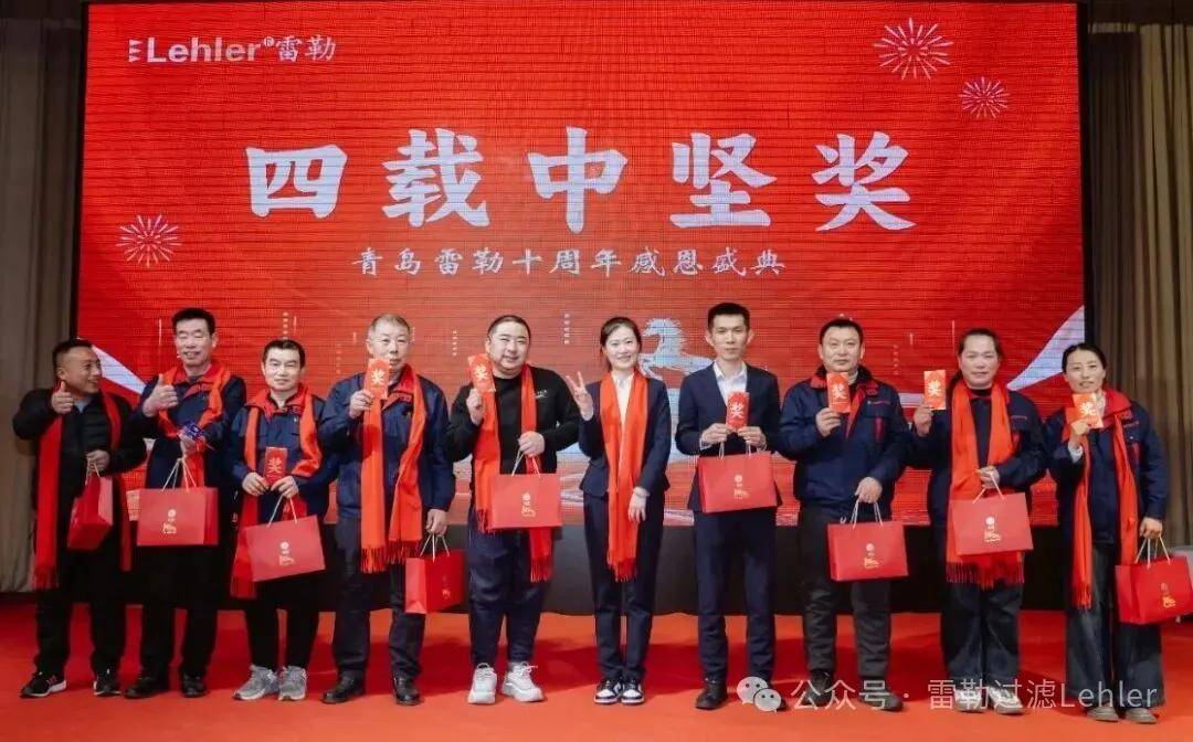 岁月不语,见证耕耘。本次年会最暖心的环节,当属全员工龄福利表彰——公司为每一位雷勒家人都准备了现金红包+十周年定制钛材质千元保温杯双重厚礼,用实实在在的心意,犒赏每一段并肩奋斗的时光: